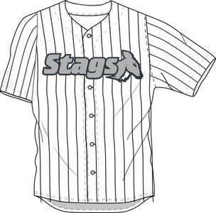 shirt van The Stags is wit met een blauwe pinstripe, voorop staat naast de clubnaam Stags het logo gedrukt. Dit shirt is verplicht vanaf de pupillen honkbal.